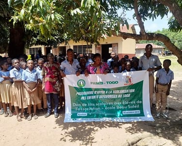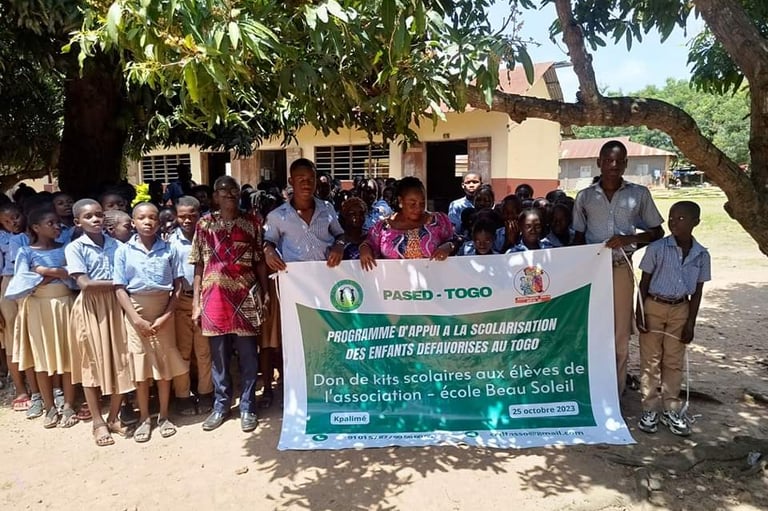 Distribution de kits scolaires aux élèves de l'association école Beau Soleil à Kpalimé dans la région des plateaux